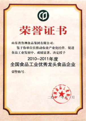 會上,集團被中國食品工業(yè)協會授予,“2010-2011年度全國食品工業(yè)優(yōu)秀龍頭食品企業(yè)”,并頒發(fā)了榮譽證書和獎牌。